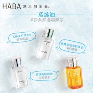 HABA 鯊烯美肌清油以專利科技精煉全球唯一99.9% 高純度的鯊烯,安全、高效而且穩定,能在乾燥的肌膚表面形成如絲般細緻的鎖水薄膜,預防水分流失,迅速平滑粗糙肌理,使臉部肌膚回復細緻幼滑、富有光澤15/